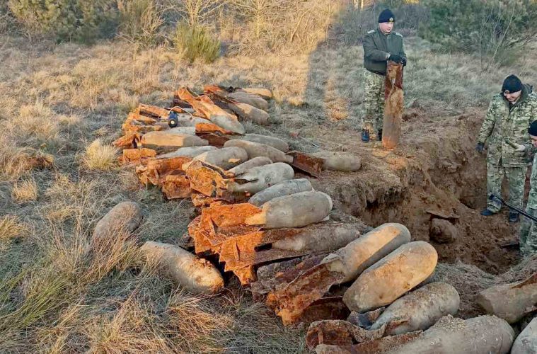 Саперы уничтожали обнаруженный вблизи деревни Жабчицы бомбовый арсенал времен Великой Отечественной войны, сообщает Пинский райисполком.