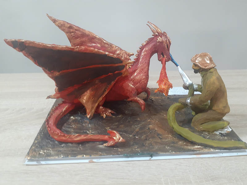 • 1-е место разделили скульптура «Ликвидация последствий железнодорожной катастрофы» в исполнении учащихся ГУО «Средняя школа №11 г.Пинска» Тихоненко Анастасии, Гордиевич Дарьи и Хоровец Дарьи и скульптура «Укрощение огненного дракона» Сверба Маргариты ГУО «Средняя школа №14 г.Пинска»;