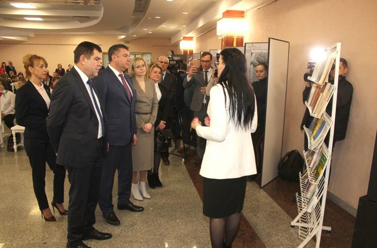 В зале были развернуты тематические выставки, рассказывающие о Великой Отечественной войне и новой Конституции Республики Беларусь, изменения и дополнения которой, принятые на республиканском референдуме, вступили в силу 15 марта.