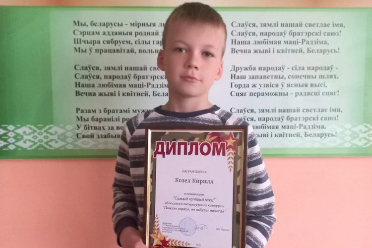В конкурсе принял участие учащийся 3 класса Ставокской средней школы Кирилл Козел. Кирилл прочитал стихотворение Сергея Михалкова «Про войну» и стал победителем в номинации «Самый лучший чтец».