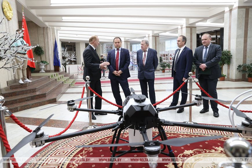 Премьер-министр посетил и постоянно действующую выставку НАН Беларуси «Достижения отечественной науки — производству». Новые материалы, лазеры и оптоэлектроника, разработки для сферы машиностроения, агропромышленного комплекса, медицины и фармацевтики — главе белорусского правительства показали последние разработки белорусских ученых по основным направлениям развития науки. Также ему продемонстрировали последние модели белорусских беспилотников.