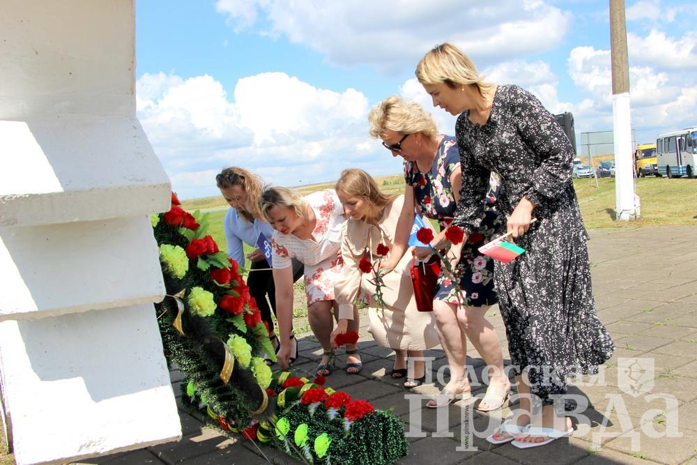 К памятнику первого боя партизан легли цветы и венки.