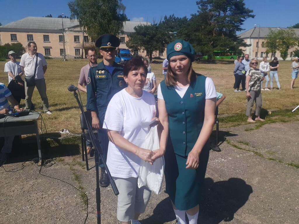 Представитель общества Красный крест Светлана Сачковская наградила памятными подарками отличившихся на пятом этапе участников в г.Пинске: