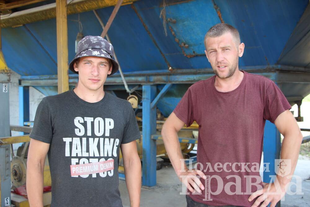 На отвозке зерна были заняты водители Александр Шупенич, Дмитрий Кохнович и Сергей Костечко. Здесь же, в поле, контролировал процесс агроном Сергей Тимошей. Важнейшее звено – доработка зерна, где трудятся операторы зерносушильного комплекса Александр Мисковец и Данила Богатков. Для них это уже не первая уборка, так что парни свое дело знают хорошо.