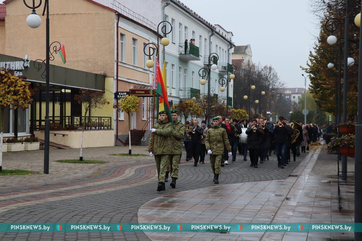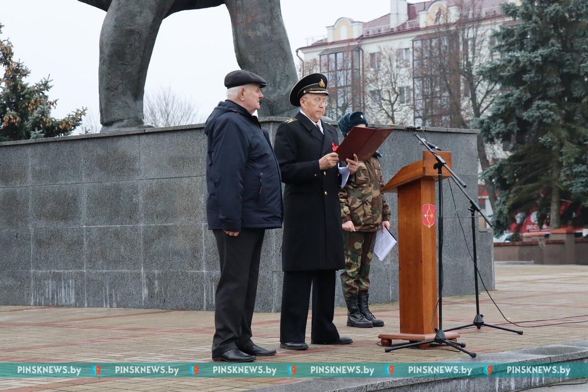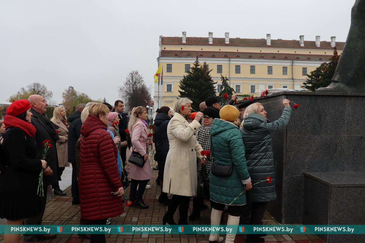 На площади Ленина собрались члены Пинских городской и районной организаций КПБ, руководство города, депутаты, представители трудовых коллективов, общественных организаций: РОО «Белая Русь», Белорусского союза женщин, БРСМ, объединения ветеранов, союза офицеров и других. Многие пришли на площадь Ленина вместе с детьми, чтобы те знали и понимали, какое важное событие, изменившее ход мировой истории, произошло 105 лет назад.