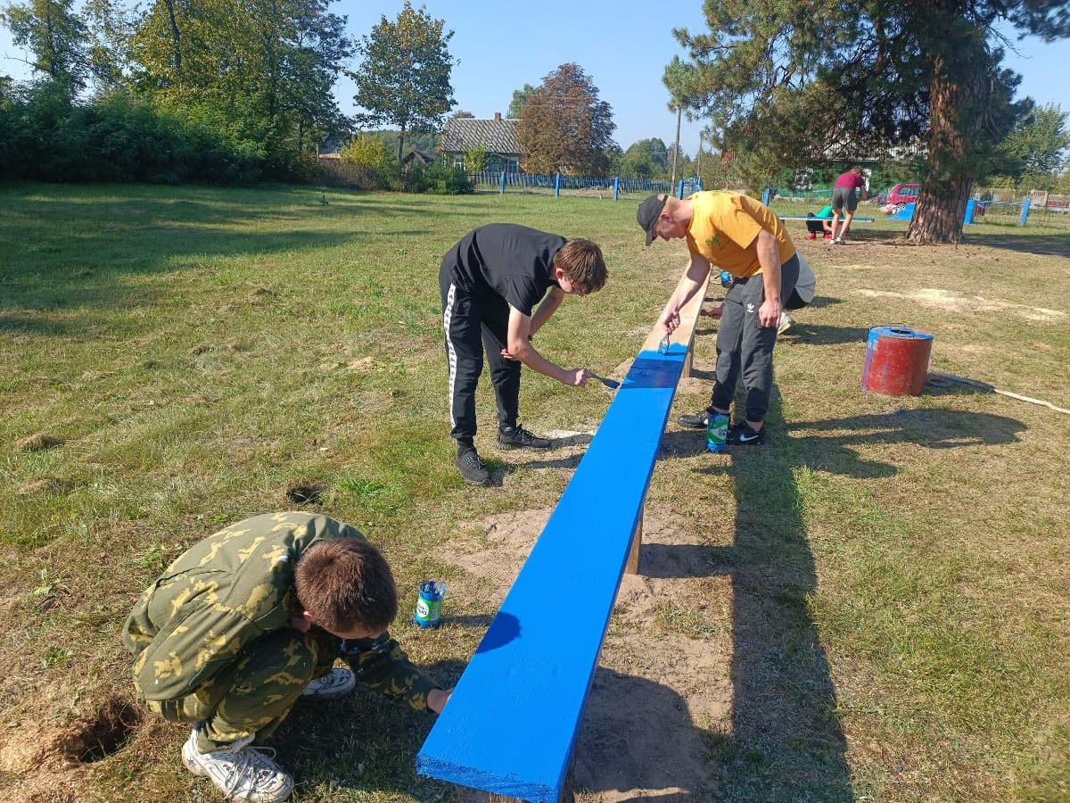 Молодежь навела порядок на территории Церкви Рождества Пресвятой Богородицы д. Лемешевичи: демонтировали старые и установили новые скамейки и покрасили их, обновили лакокрасочное покрытие на въездных воротах и ограждении.
