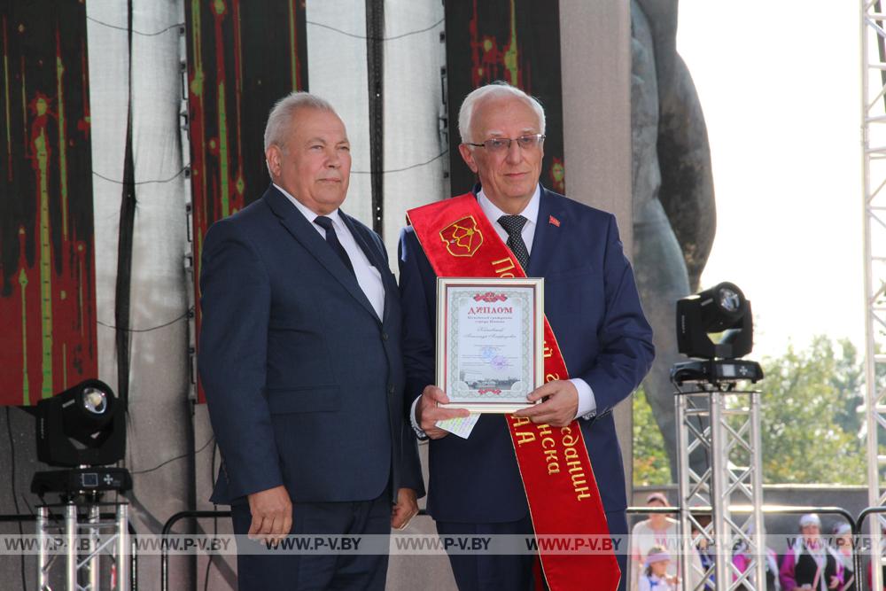 Председатель горсовета депутатов Леонтий Лемешевский вручил соответствующие регалии первому секретарю горкома Коммунистической партии Беларуси Александру Каневскому, удостоенному звания «Почетный гражданин г. Пинска».
