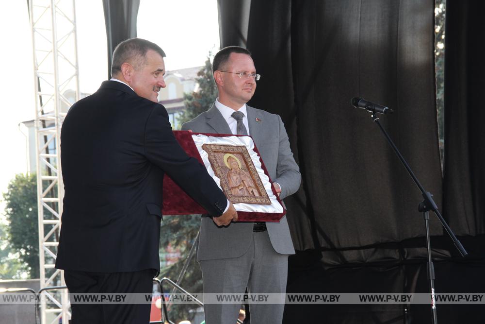 Поздравление Пинску от имени председателя облисполкома Юрия Шулейко огласил председатель Брестского горисполкома Сергей Лободинский. Губернатор также направил приветственный адрес главе Пинской католической епархии Антонию Демьянке по случаю 25-летия принятия епископского сана.