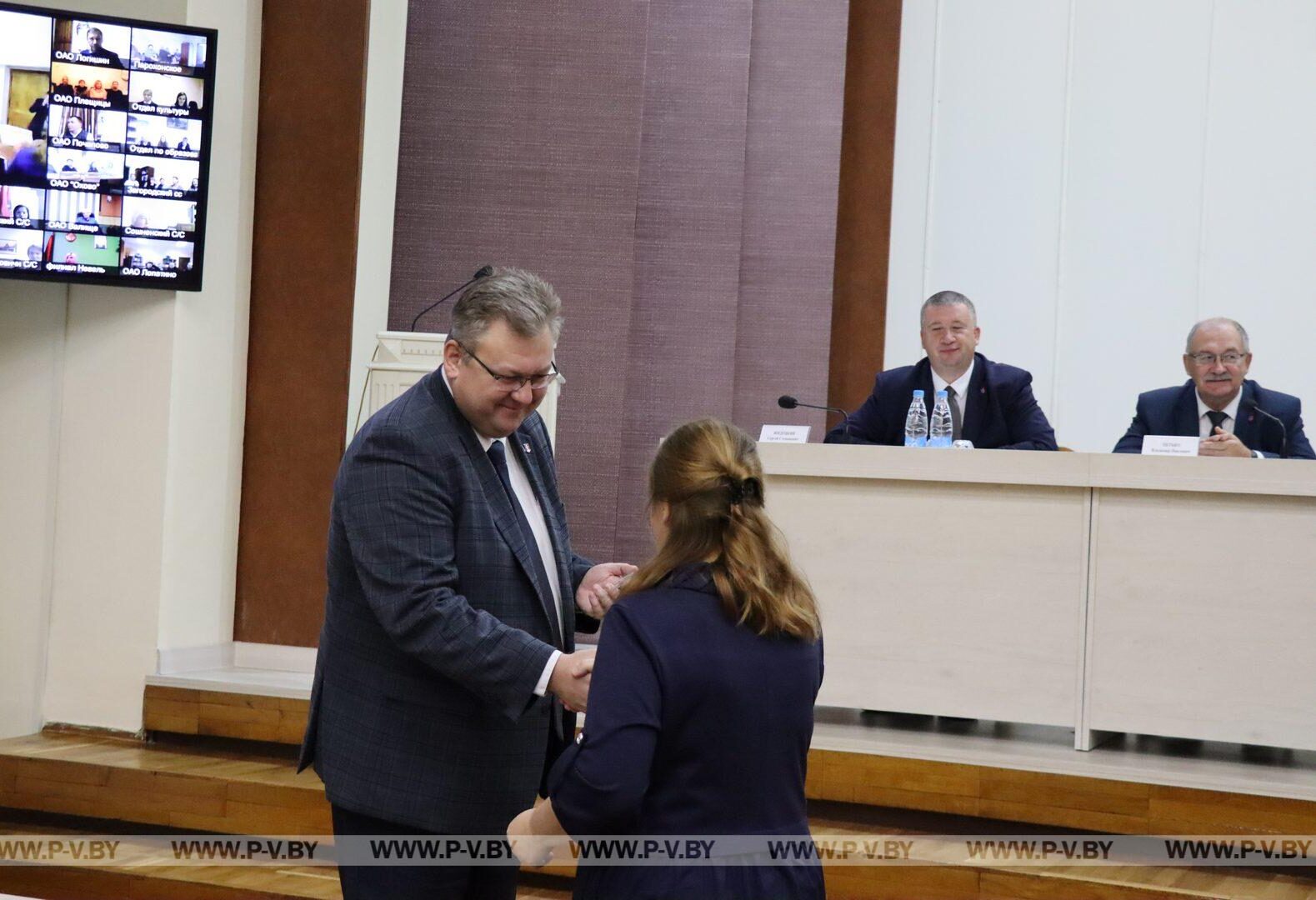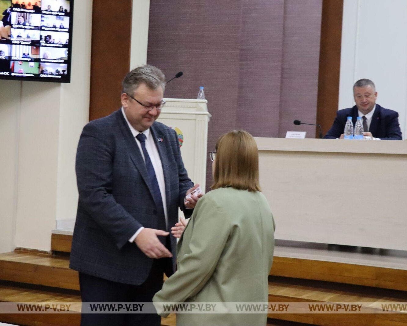 В рамках заседания райисполкома состоялось чествование именинницы – заведующей сектором по работе с обращениями граждан и юридических лиц Елены Мохор. Цветы вручил ей председатель райисполкома Игорь Брилевич.