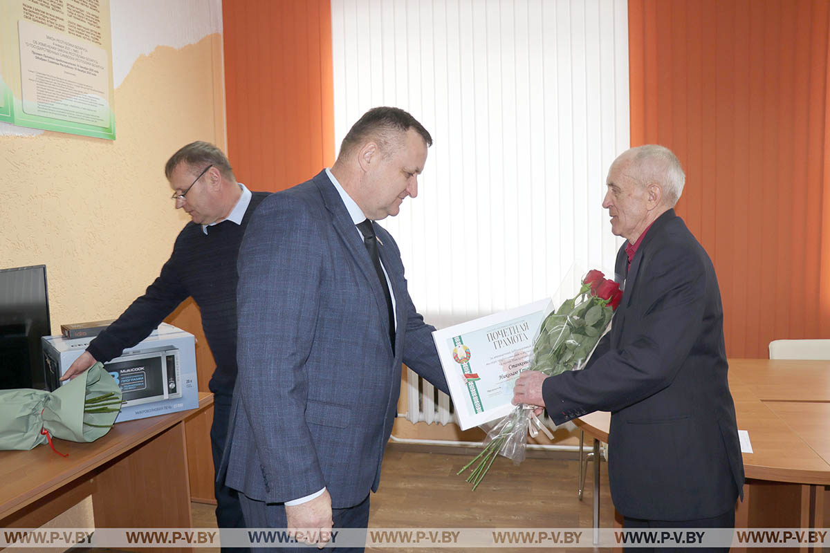 Поддержал директора и председатель районного Совета депутатов Вячеслав Лозюк. Он, еще будучи начальником Пинского ГРОЧС, тесно сотрудничал с Н.Г. Станкевичем и знает его как человека слова и дела. Вячеслав Иванович поздравил Николая Григорьевича с выходом на заслуженный отдых и вручил ему Почетную грамоту районного Совета депутатов. Конечно же, не обошлось без цветов и подарков.