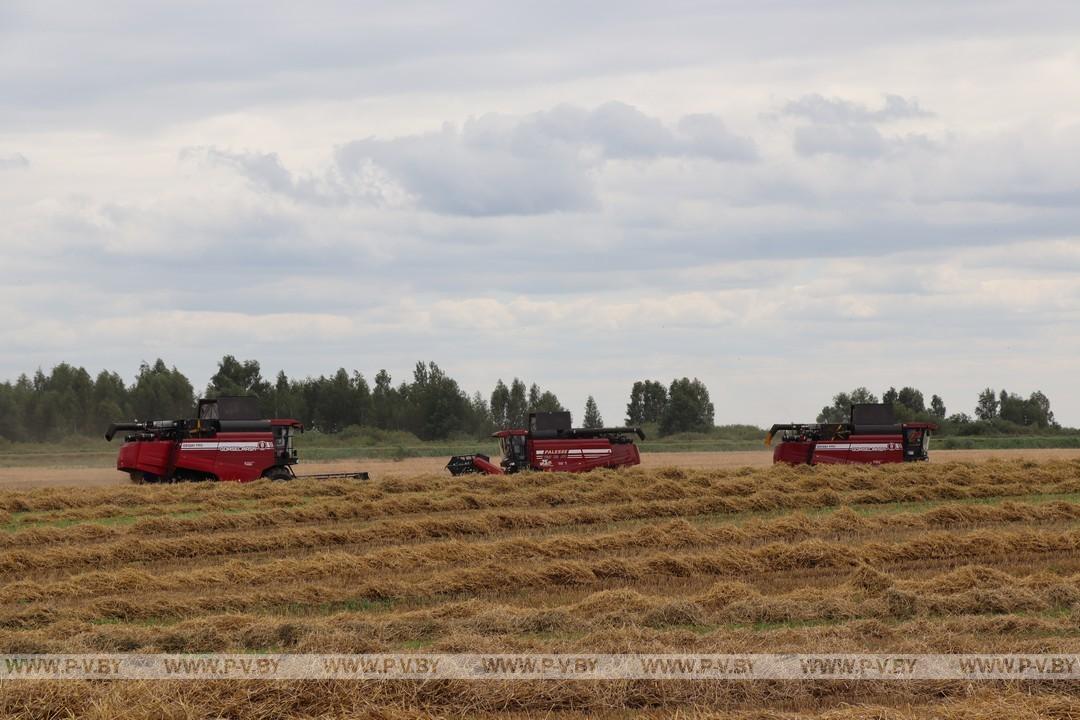В филиале «Невель» ОАО «Пинский мясокомбинат» жатва началась намного позже, чем в прошлом году. Заморозки сдвинули срок созревания культур приблизительно на полторы недели. Если, скажем, ячмень обычно убирали в начале июля, то нынче – в третьей декаде месяца. Таким образом, в 2024-м на эту дату было сжато 80 процентов площадей, а теперь – столько же осталось.