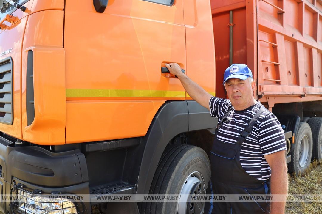 Флажок «Первый» реет и над автомобилем Леонида Васильевича Шпака. С 1986 года он в хозяйстве, несколько лет успел поработать со знаменитым Владимиром Ралько. К 1 августа его рекорд составил – 823 тонны перевезенного зерна.