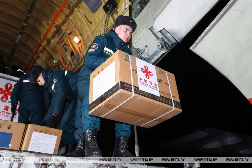 В общей сложности в Беларусь прибыло 1,5 млн доз вакцины SARS-CoV-2 Vaccine (Vero Cell), Inactivated компании Sinopharm — это количество закупил у Китая Минздрав Беларуси. Также китайская сторона передала Беларуси 500 тыс. доз вакцины и 500 тыс. шприцев в качестве иностранной безвозмездной помощи. В решении этого вопроса Минздраву Беларуси активно помогали представители министерств иностранных дел и посольства двух стран. Работники МЧС Беларуси принимали и сопровождали помощь, а курсанты ведомства разгружали самолет Министерства обороны по прибытии.