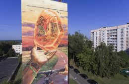 Мурал на одном из домов в Гродно создали пинские художники Евгений Сосюра и Сергей Рысаков 01.09.2022 Почему центральной темой композиции авторы выбрали именно янтарь?...