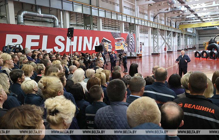 Президент отметил успехи Беларуси за годы суверенного развития. Например, большое развитие получило АПК, в то время как в 90-е годы даже хлеб давали только по талонам, а в магазинах были пустые полки. «Сегодня главное, чтобы побольше денег было. Деньги у вас здесь. Продайте больше шин — получите больше денег», — сказал Александр Лукашенко.