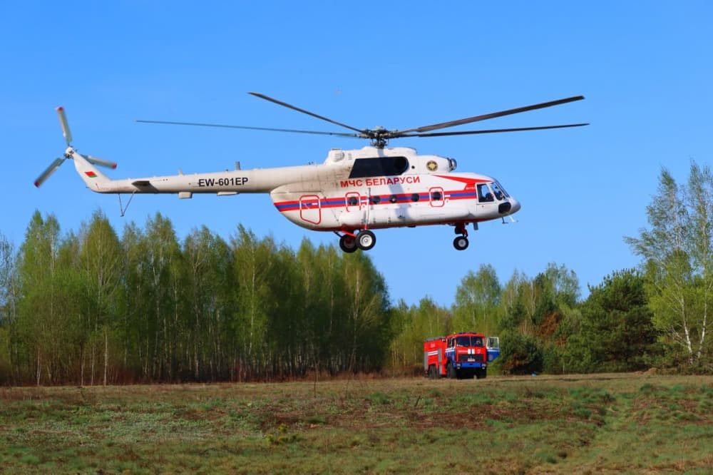 Затем спасатели на вертолете прибыли в Ивацевичский район для проведения поисково-спасательных работ группы туристов в лесном массиве.