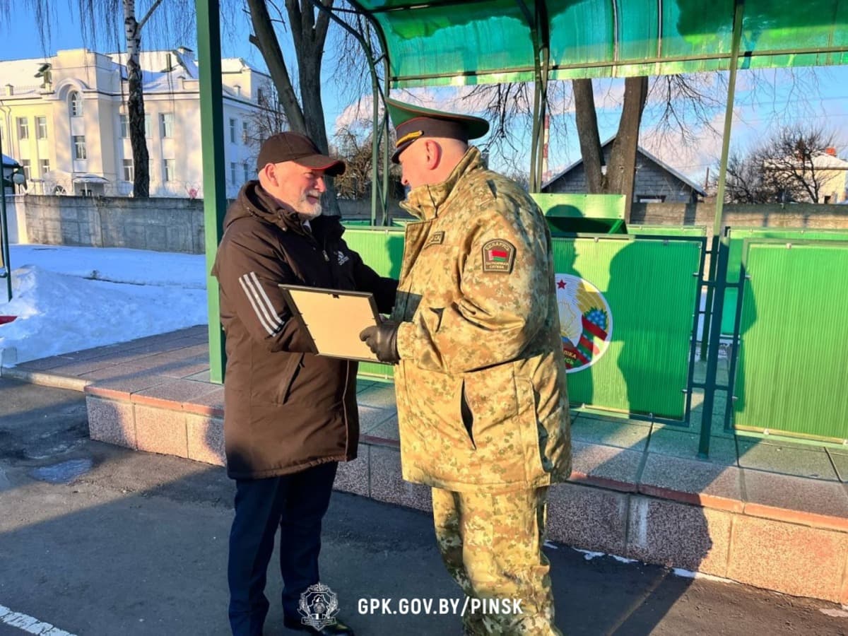 Начальник отряда полковник Сергей Шинкевич, а также председатель профсоюза воинской части Сергей Гилевский вручили Михаилу Ивановичу благодарственный адрес и ценный подарок, отметив его значительный вклад в развитие культуры Пинщины.